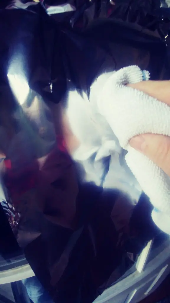 3. Stick to tin foil to the window using the double-sided to keep it up while you take a sponge or a washcloth and gently press it flat and into every crease and corner, be careful not to tear the foil.