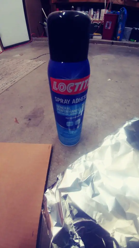 5. Spray the cardboard and the dull side of the aluminum foil with spray can adhesive.