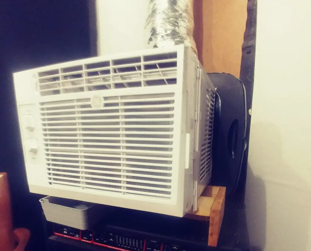 So a solution to get some air conditioning ( admittedly not a very good one) was to take a window air conditioner and install it with the heat blowing inside of the wall. When I say inside of the wall, I mean the air would exhaust into the space between the inside wall and outside wall.